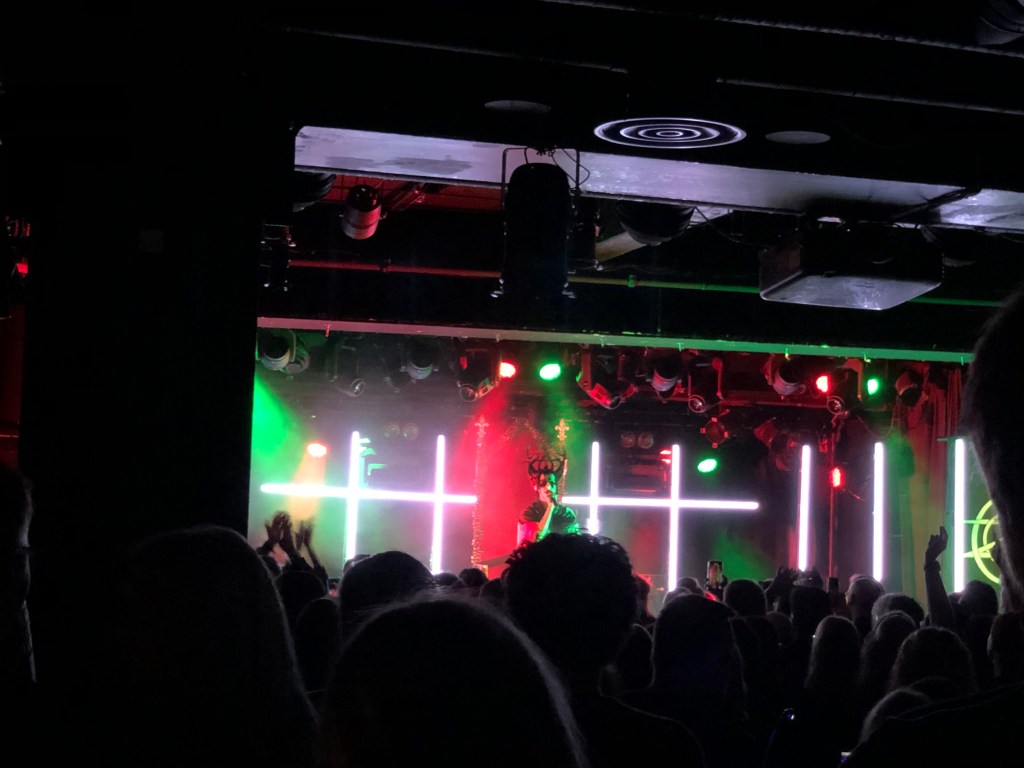 En god time etter The Darklings går av entrer Bambie Thug scenen. Dessverre fikk jeg en liten følelse av at timen mellom oppvarmer og høydepunktet ble litt vel lang for en del av publikum, og selv om jubelen var tilstede da Bambie Thug kom på ble nok den nylig slupne åpningslåta Hex So Heavy mottatt med litt mer laber stemning enn jeg hadde sett for meg på første låt. I snakk med en annen publikummer i etterkant fikk jeg også bekreftet at ventetiden opplevdes som litt vel lang. Og på tross av at Bambie Thug nailet en av sine eldre låter NECROMANCY rett etterpå følte jeg ikke at stemningen kom ordentlig på plass før den fjerde låta, Kawasaki (I Love It), kom på. Det skal sies at stemningen i starten ble holdt oppe av at The Darklings tok av seg høye hæler og sto i tøfler og rocka ut midt blant publikum fra start til slutt av konserten. Siden lokalet ikke var fullstappet ga det også en slags vibe av at vi alle var der samlet som venner på en litt større fest, og en slik nær følelse er det ikke gitt at man kan få på konsert.